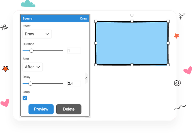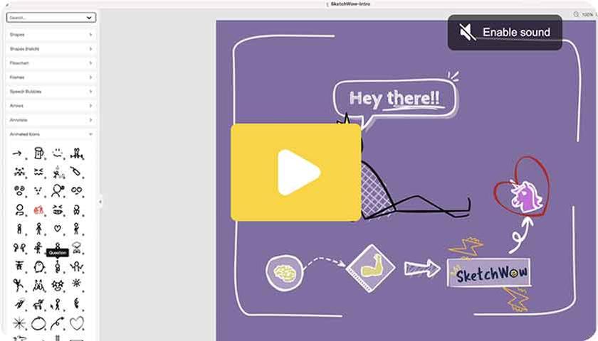 With your SketchWow Animate add-on, you’ll get access to a TON of creative options to spice up your diagrams... visuals... content... presentations... lessons... slideshows and videos to explain just about anything – using super-cool-looking sketch animations!